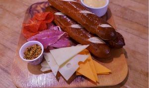 Warm Bavarian pretzels, pepperoni, capicola, domestic cheeses, grain mustard, cheese fondue